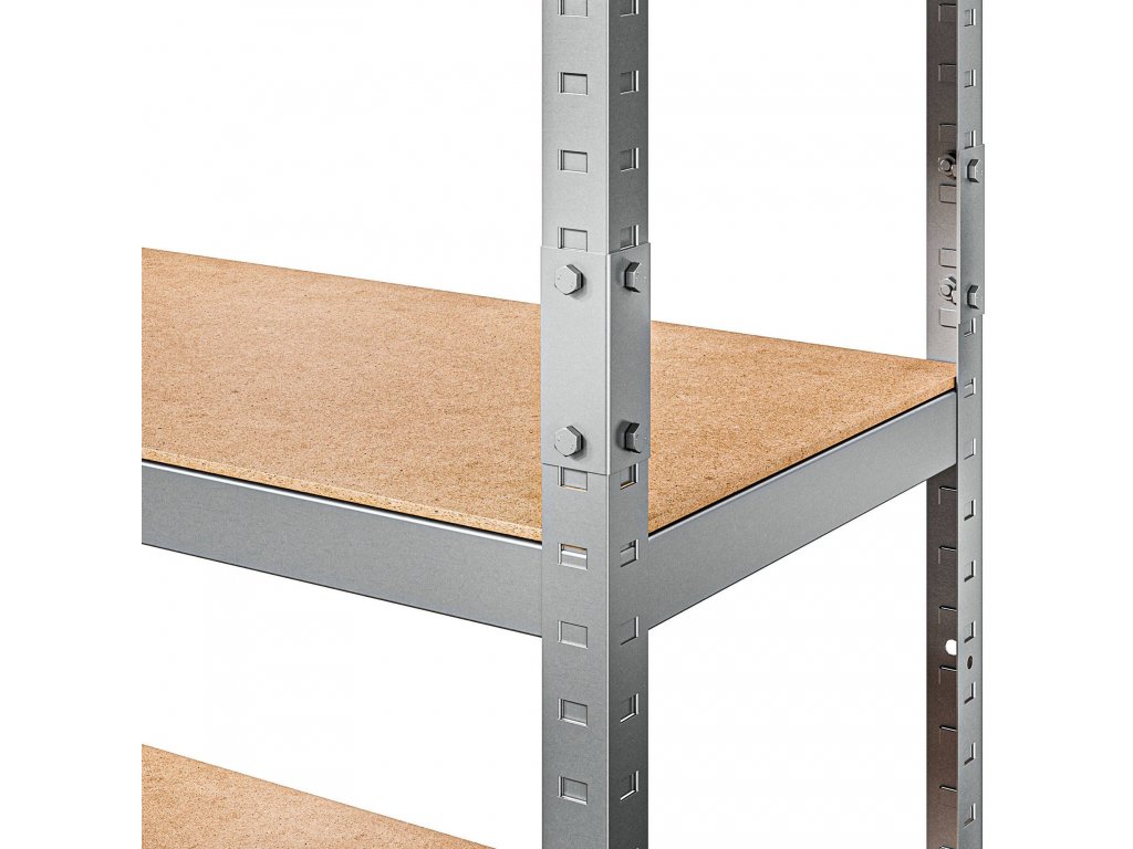 Skladový regál Primo II je vhodný do kanceláře, skladů a dalších míst, které vyžadují stabilní prostor na ukládání zboží, dokumentů nebo nástrojů. Regál je vyroben z pozinkované oceli, která zajišťuje dlouhou životnost. Police mají nosnost 100 kg a jsou vyrobeny z velmi odolné MDF desky, která s lehkostí vydrží zátěž těžkých předmětů a zboží. Regál Primo II můžeme použít samostatně nebo ho spojit do řady libovolné délky - na tento účel byly vytvořeny boční otvory. Zadní otvory nám umožňují upevnit regál přímo na stenu.Poličky jsou připevněny k rámu stojanu inovativní metodou, která zajišťuje stabilitu a odolnost spojů.