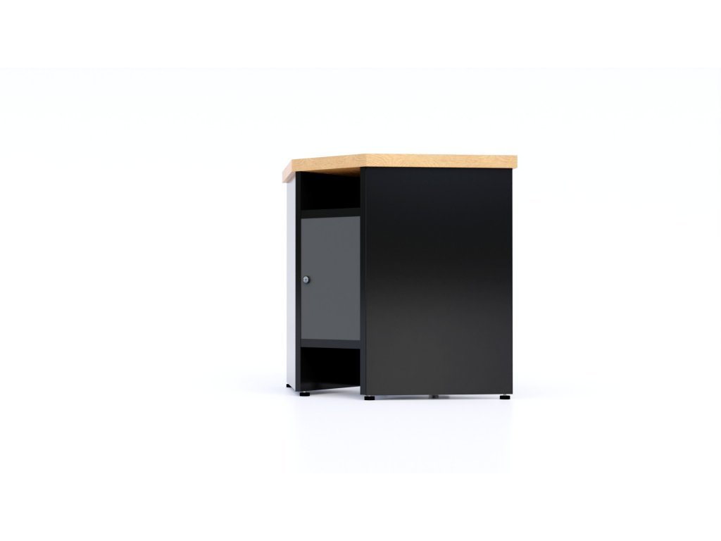 Kovový stůl rohový je určen pro dílnu, garáž, servis či přímo výrobu. Jeho konstrukce je masivní a pevná. Je vybaven jednou uzamykatelnou skříňkou. Tento stůl slouží jako modul k sestavě, ale lze jej využít i samostatně.