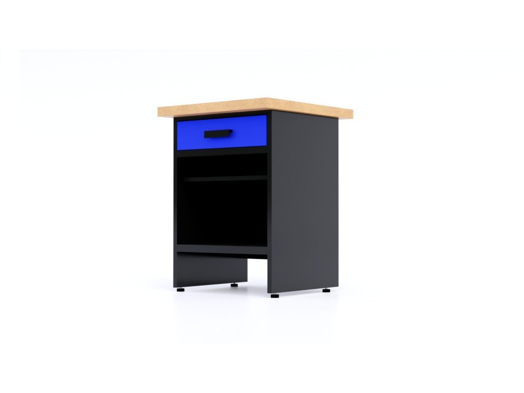 Kovový stůl WB1C je určen pro dílnu, garáž, servis či přímo výrobu. Jeho konstrukce je masivní a pevná. Je vybaven jednou zásuvkou. Tento stůl slouží jako modul k sestavě, ale lze jej využít i samostatně.