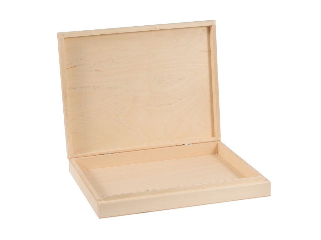 Dřevěná kazeta na listy A4 je elegantním řešením skladování dokumentů. Minimalistická provedení z ní činí také skvělou dárkovou krabičku. Perfektně se hodí pro kreativní tvoření pomocí techniky decoupage, tedy ubrouskové techniky či pro vypalování dřeva.