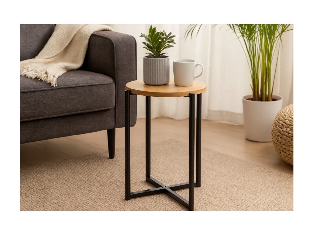 Kulatý stůl s kovovou podstavou je stylovým a praktickým doplňkem do moderního interiéru. Díky svému vzhledu je ideální i do menších prostor, kde poskytuje dostatek odkládací plochy, aniž by působil robustně. Minimalistický design v kombinaci s pevnou kovovou základnou zaručuje stabilitu, odolnost a nadčasový vzhled.