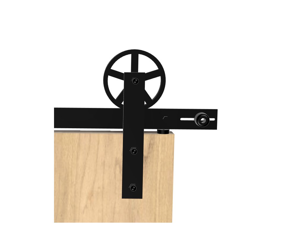 Kolečko vozíku je vyrobeno kompletně z kovu, což umožnilo vytvořit krásný tvar kolečka, umocňující industriální vzhled kování. Také je kolečko vybaveno ložiskem pro hladký chod dveří. Kolečko má průměr 15 cm.