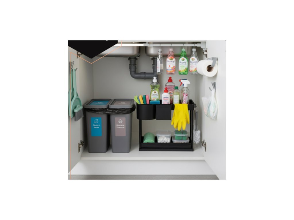 Udělejte si v kuchyni pořádek s jedinečným organizérem.Tato dvouúrovňová výsuvná police je ideálním řešením pro všechny, kdo si potrpí na funkčnost i estetiku. Umístěte ji pod umyvadlo, do koupelny nebo spíže a získejte více prostoru, přehled a pořádek ve všech každodenních potřebách.