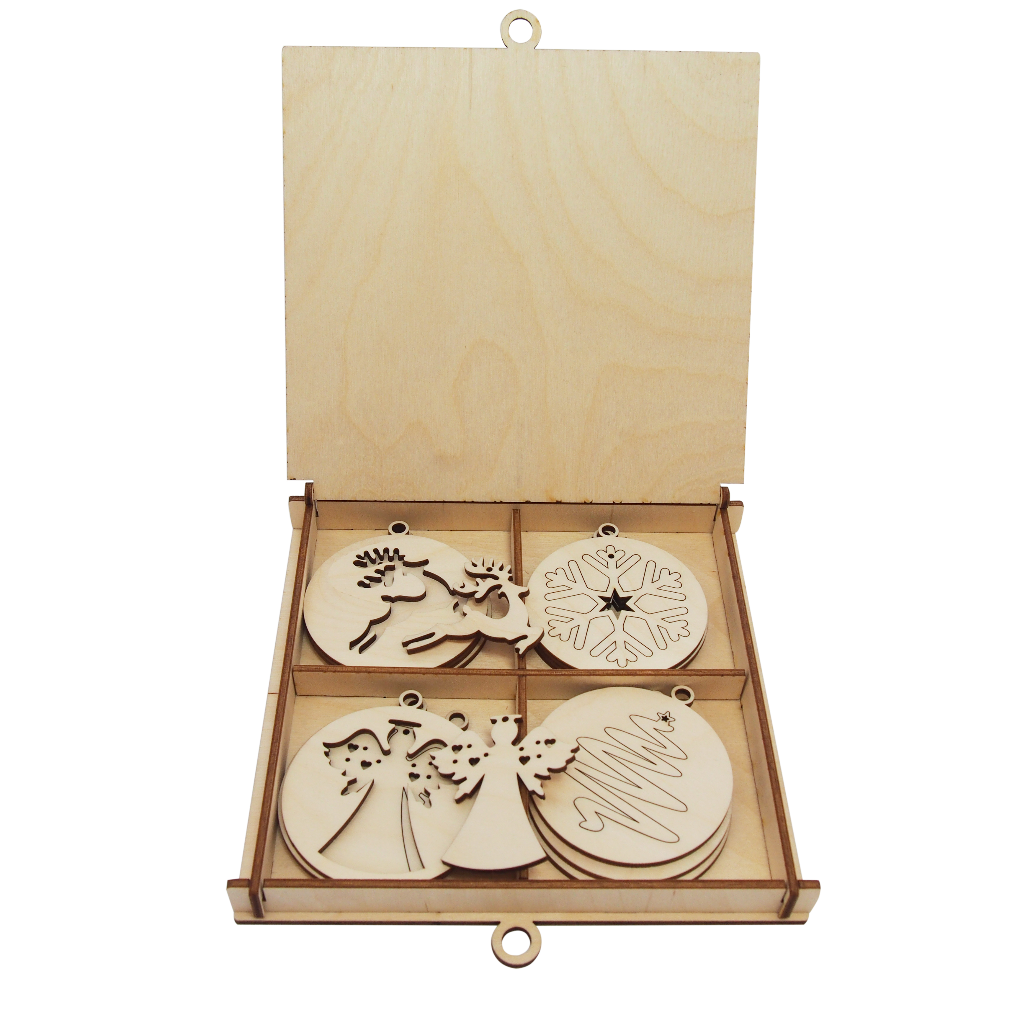 Sada vánočních dřevěných ozdob 24 ks v boxu