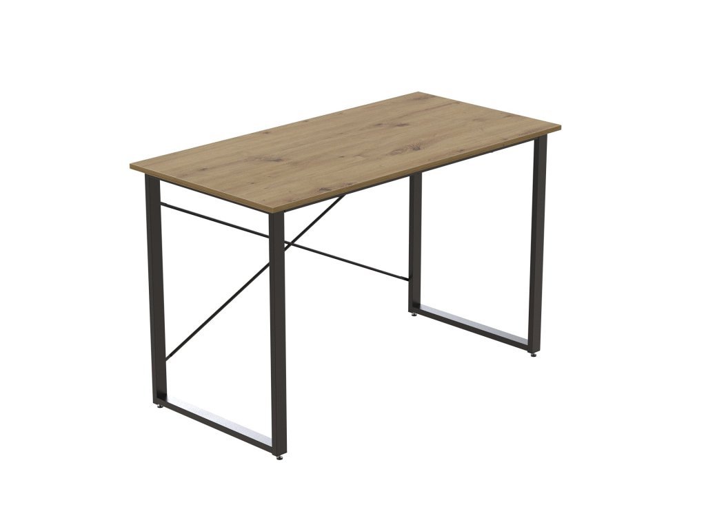 Stolní deska v dekoru dubu působí teplo a přirozeně, zatímco antracitový kovový rám dodává stolu nadčasový industriální charakter.